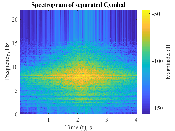 Signals for Cymbals and Bass are shown below. These instruments are chosen as they operate in non-overlapping frequency range. Cymbals operate in the range 3 to 5 kHz and bass drums between 60 to 100 Hz.
