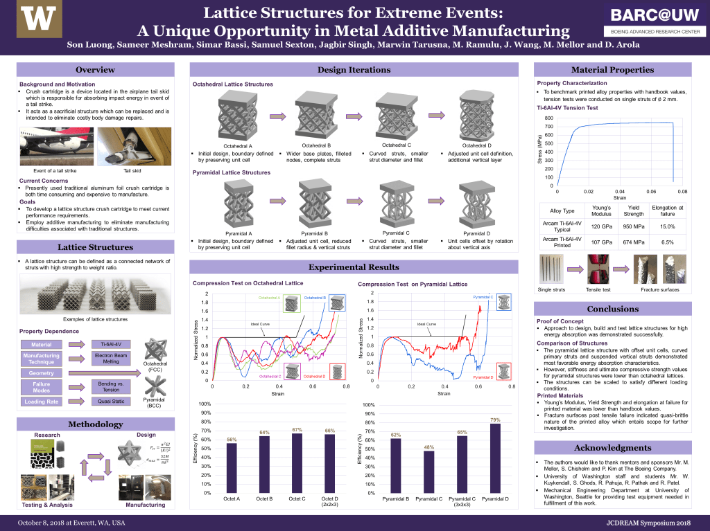 A cursh cartridge is a component that is responsible for absorbing impact energy through large deformations. These structures undergo sacrificial damage in the event of a tail strike, thereby reducing the potential for expensive and detrimental damage to the primary structure. In this project, a study was conducted to test the energy absorption capability of additively manufactured (3D printed) Ti-6Al-4V structures.
