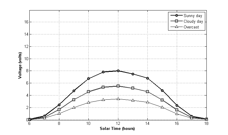 Moreover, sensor was tested under three different illumination conditions – a sunny day, a cloudy day and an overcast day to establish performance consistency in different climatic condition (figure below). No variation was observed in location of the MPP under these conditions due to the relative nature of the algorithm.